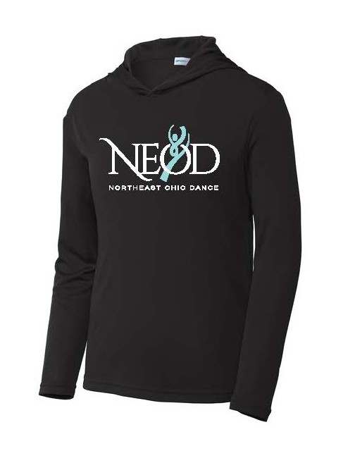 This lightweight, moisture-wicking hooded pullover is available in sizes YXS – YXL in black and iron grey. The NEOD logo will be a full-front design.