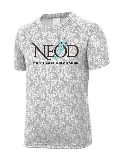 This digi camo moisture-wicking performance tee is available in youth sizes XS – XL in black, grey concrete, or white. NEOD logo will be a full-front design.