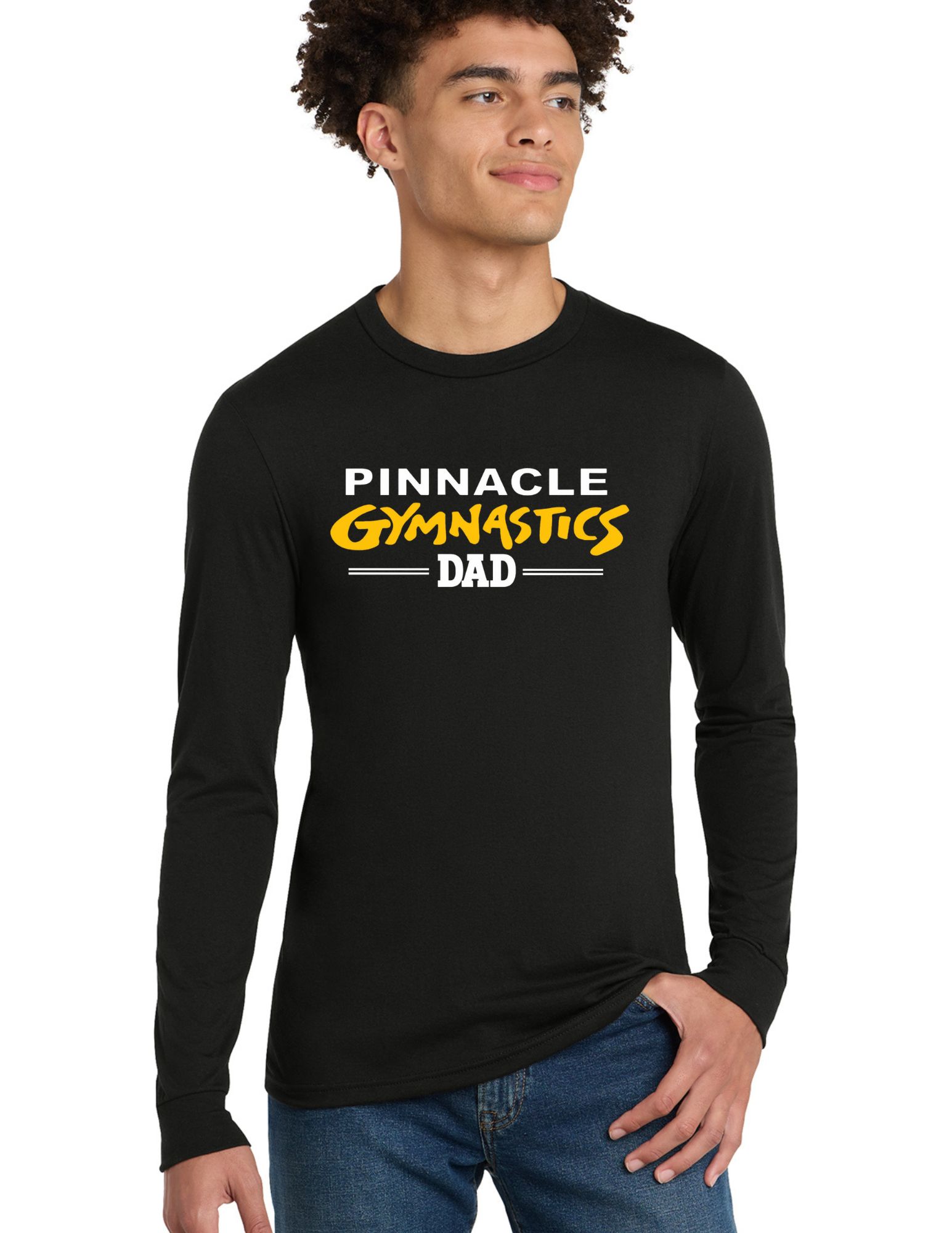 This tri-blend long-sleeve tee will be embellished with your choice of traditional Pinnacle Gymnastics script or the block Pinnacle logo with starburst. You can also support your favorite athlete by celebrating your role; mom, dad, grandma, or grandpa! Available in youth sizes YXS – YXL and AXS – A4XL.
