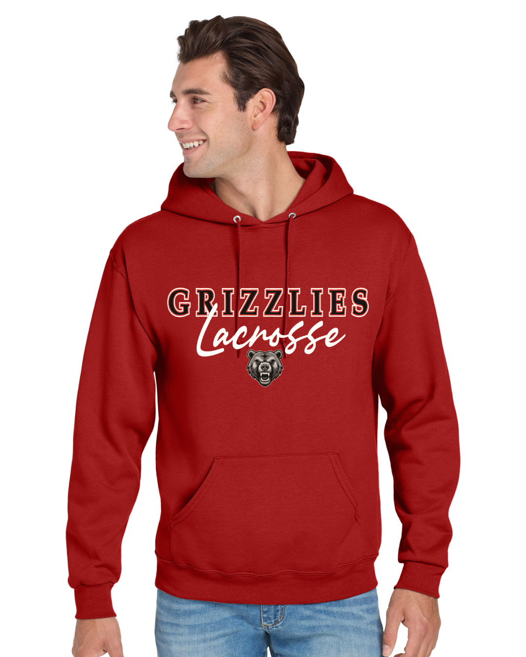 This Jerzees Dri-Power 50/50 Cotton/Poly hoodie sweatshirt is available in black, grey, or red with Wadsworth Lacrosse in a full front design.  All products will have the orange ribbon on the sleeve.