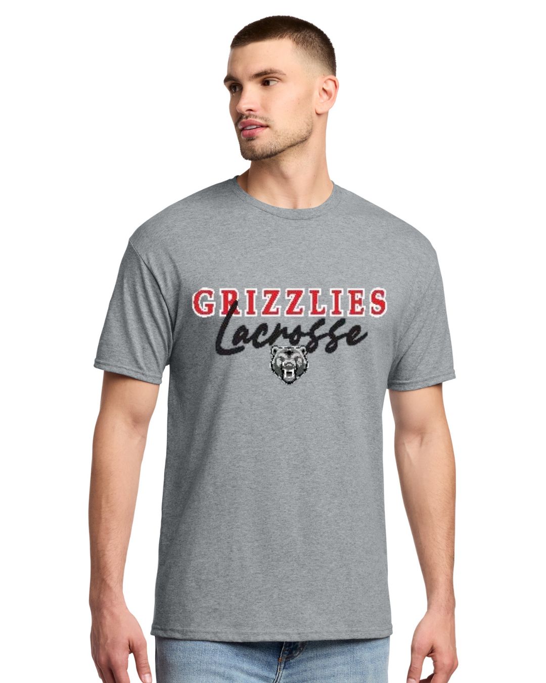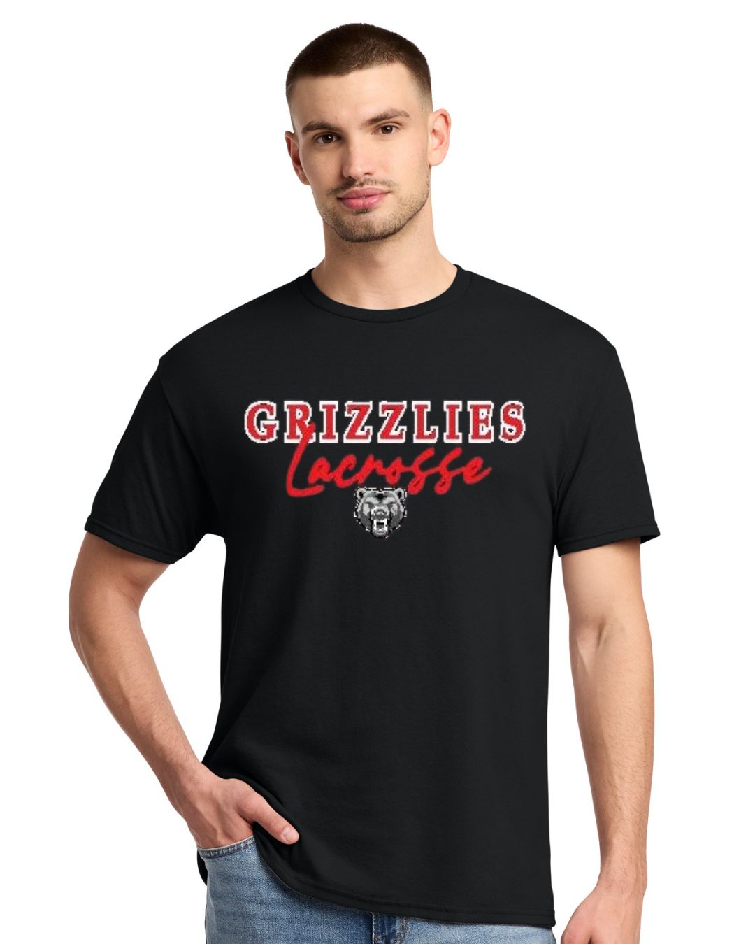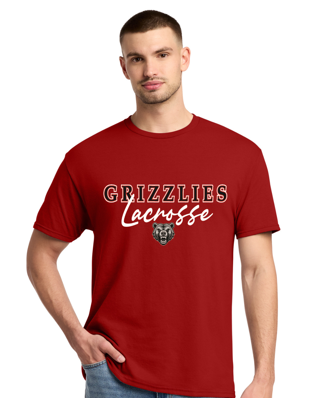 This Jerzees Dri-Power 50/50 Cotton/Poly t-shirt is available in black, grey, or red with Wadsworth Lacrosse in a full front design. All products will have the orange ribbon on the sleeve.