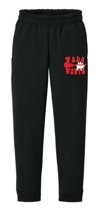 These jet black joggers come decorated with Wadsworth and a stick and bear paw on the left hip.